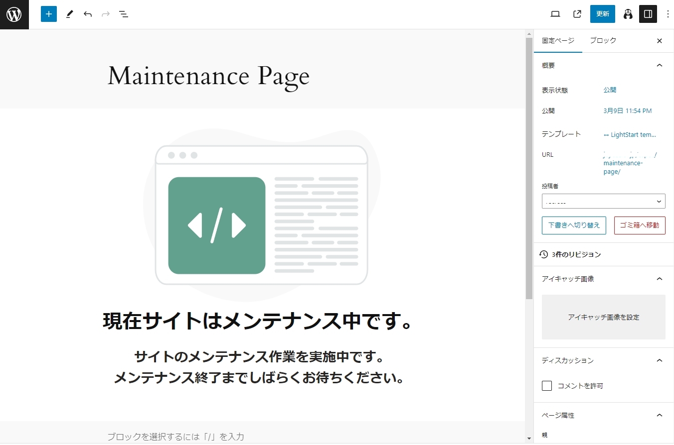 ※「LightStart」の2024年3月現在の正式名称は、「LightStart – Maintenance Mode, Coming Soon and Landing Page Builder」です。