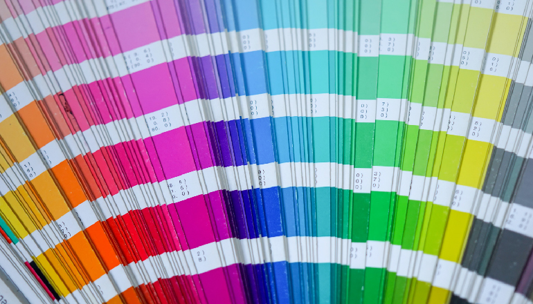 オフセット印刷は、製版をし高速で印刷する、大部数を印刷することに向いている印刷方法です。オフセット印刷も基本的に色は、C(シアン)、M(マゼンタ)、Y(イエロー)、K(ブラック)を掛け合わせて表現しますが、金色や銀色、蛍光色などのCMYKの掛け合わせでは表現できない色見や、絶対に色ずれが発生してはならいない場合など、特色といわれる色を印刷することも可能です。